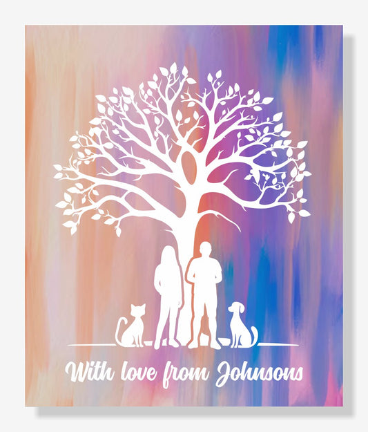 Celebrate the bond of family with our customisable Family Tree Art Set! Choose the style of your tree and the family members standing beneath it. Add your own meaningful text, whether it's names, a special date, or a heartfelt message.